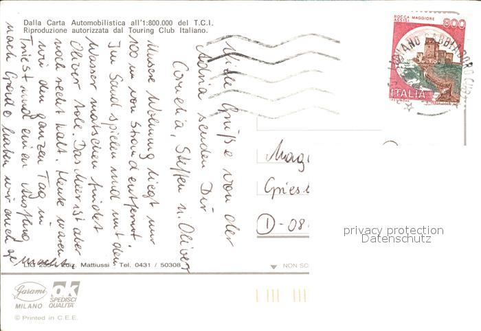 old postcard Lignano Fliegeraufnahme Strassenpartie Strand Hafen Brunnen Karte postalisch gelaufen Erhaltung siehe scans
