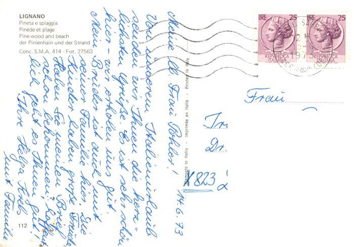 73905191 old postcard Lignano IT Pineta e spiaggia postalisch gelaufen Erhaltung siehe scans [FriedD77] KatCode: 11240