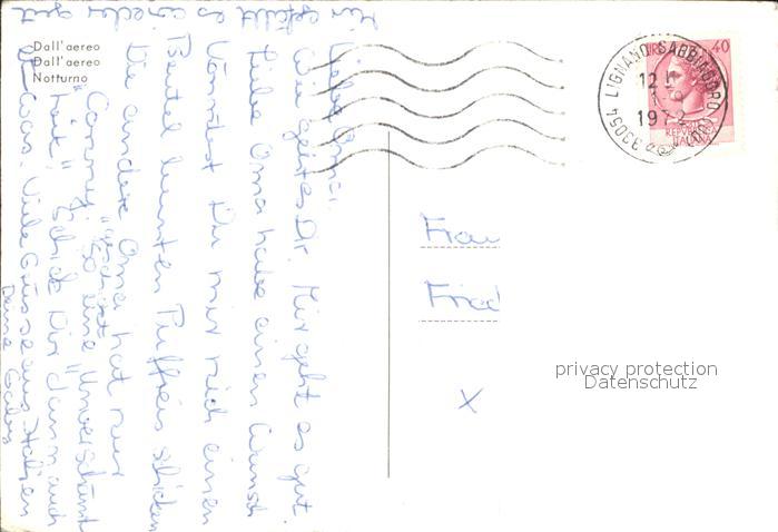 old postcard Lignano Luftaufnahme Strand Abendstimmung postalisch gelaufen Erhaltung siehe scans