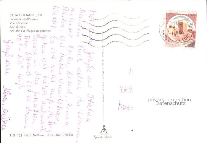 old postcard Lignano Panorama dall aereo postalisch gelaufen Erhaltung siehe scans