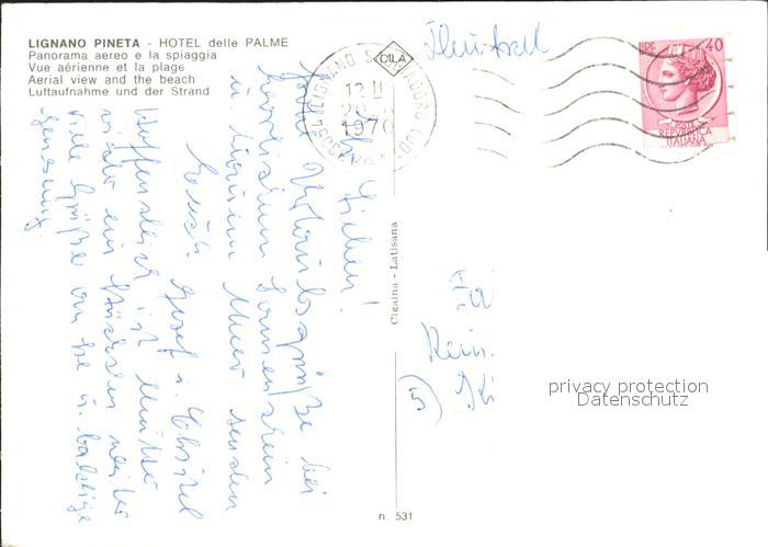old postcard Lignano Pineta Hotel della Palme Strand postalisch gelaufen Erhaltung siehe scans