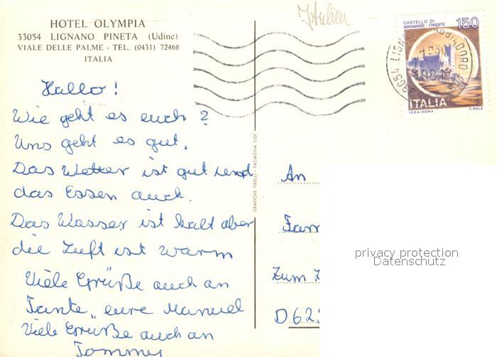 old postcard Lignano Pineta Hotel Olympia Swimming Pool postalisch gelaufen Erhaltung siehe scans [FriedD77]