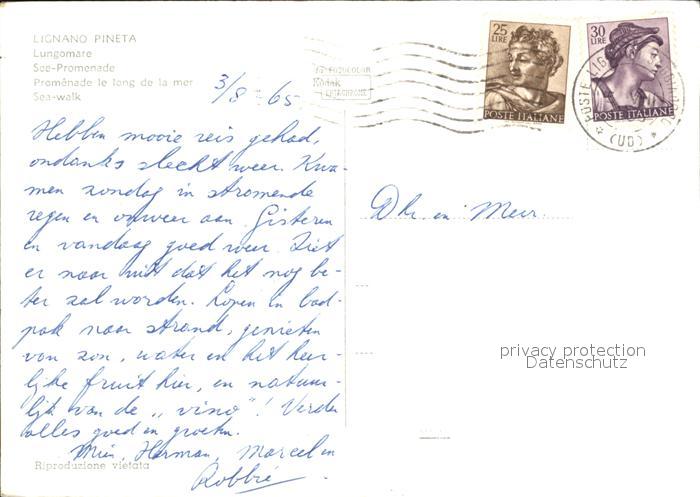 old postcard Lignano Pineta See-Promenade postalisch gelaufen Erhaltung siehe scans