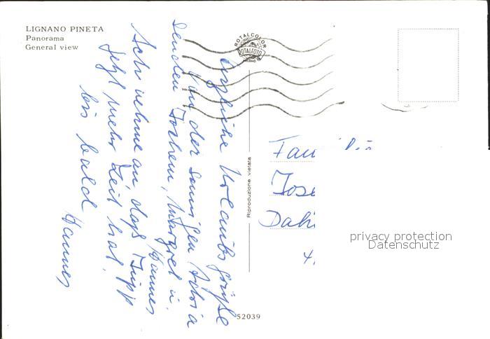 old postcard Lignano Pineta Spiaggia Strand Hotels postalisch gelaufen Erhaltung siehe scans
