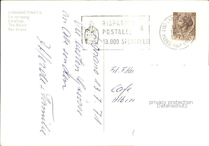 old postcard Lignano Pineta Spiaggia Strand postalisch gelaufen Erhaltung siehe scans