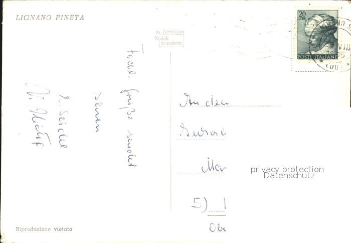 old postcard Lignano Pineta Strand postalisch gelaufen Erhaltung siehe scans