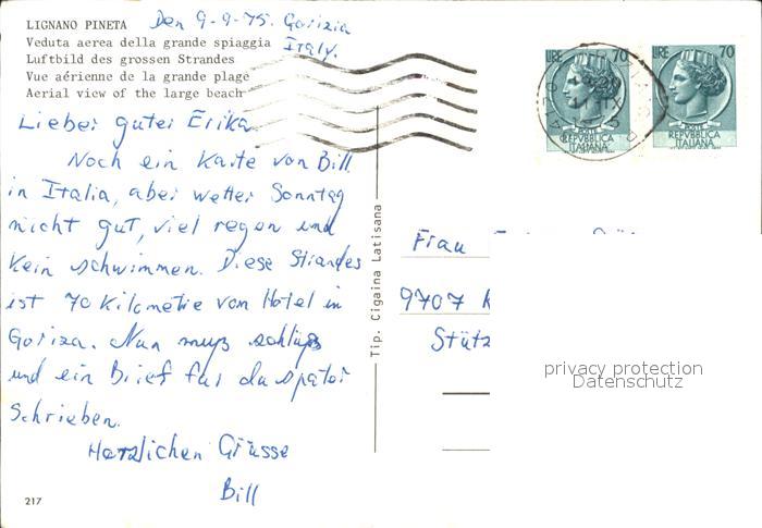 old postcard Lignano Pineta Veduta aerea della grande spiaggia postalisch gelaufen Erhaltung siehe scans