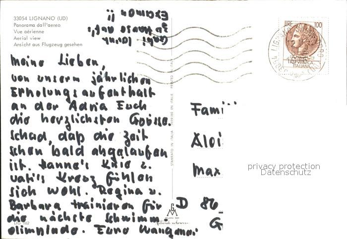 old postcard Lignano Sabbiadoro Fliegeraufnahme postalisch gelaufen Erhaltung siehe scans