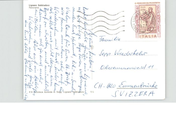 old postcard Lignano Sabbiadoro Fliegeraufnahme postalisch gelaufen