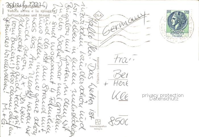old postcard Lignano Sabbiadoro Fliegeraufnahme Strand postalisch gelaufen Erhaltung siehe scans
