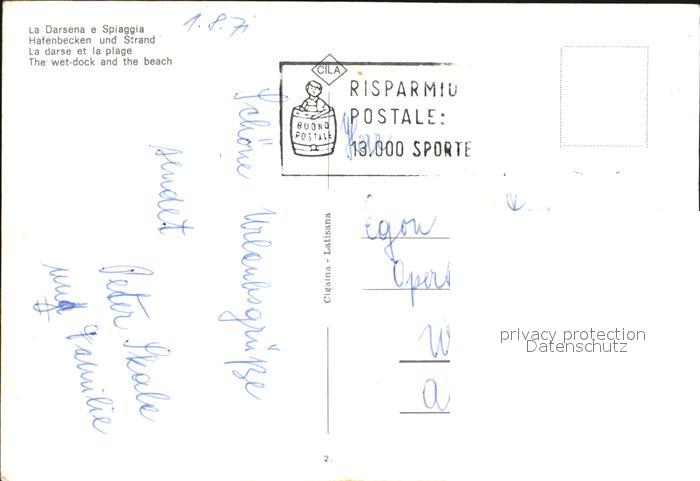 old postcard Lignano Sabbiadoro Hafenbecken und Strand postalisch gelaufen Erhaltung siehe scans