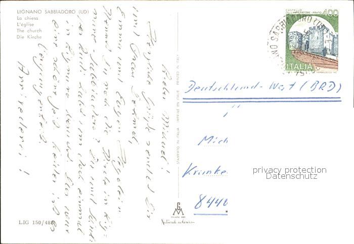 old postcard Lignano Sabbiadoro Kirche postalisch gelaufen Erhaltung siehe scans