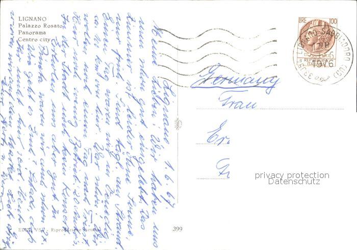 old postcard Lignano Sabbiadoro Palazzo Rosato Zentrum postalisch gelaufen Erhaltung siehe scans
