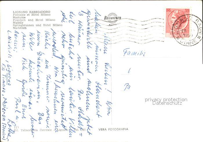 old postcard Lignano Sabbiadoro Springbrunnen Hotel Milano postalisch gelaufen Erhaltung siehe scans