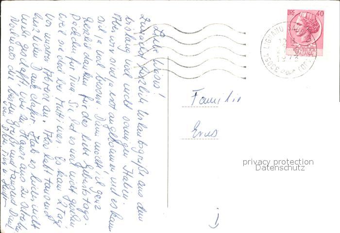 old postcard Lignano Sabbiadoro Teilansichten Kuestenort Ferienanlagen Hotels Strand postalisch gelaufen Erhaltung siehe scans