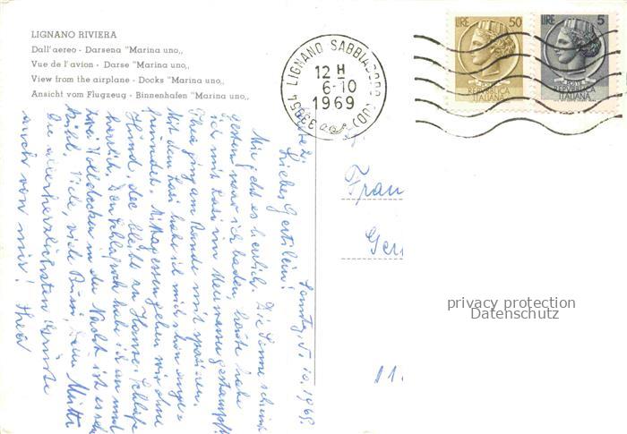 74096148 old postcard LIGNANO Sabbiadoro Veneto IT Binnenhafen Marina uno Luftbild postalisch gelaufen Erhaltung siehe scans [IrynaD87] KatCode: 11240