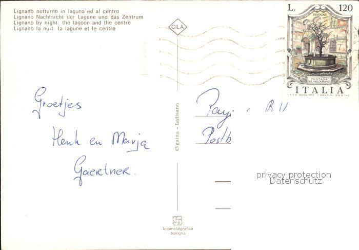 old postcard Lignano Springbrunnen Lagune Nachtaufnahme postalisch gelaufen Erhaltung siehe scans [KathaD75 kv015box]