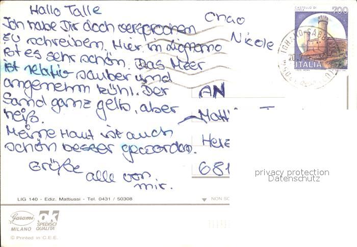 old postcard Lignano Strand Anlegestelle Brunnen postalisch gelaufen Erhaltung siehe scans