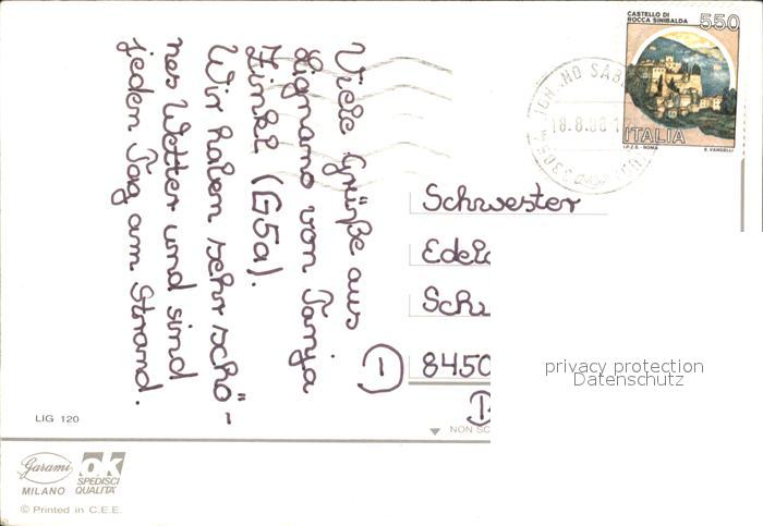 old postcard Lignano Strand Hafen Stadtansicht Abendstimmung postalisch gelaufen Erhaltung siehe scans