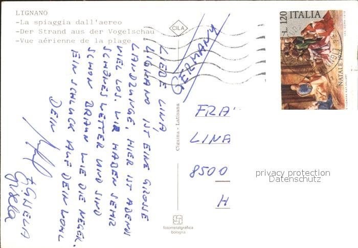 old postcard Lignano Strand Luftbild postalisch gelaufen Erhaltung siehe scans
