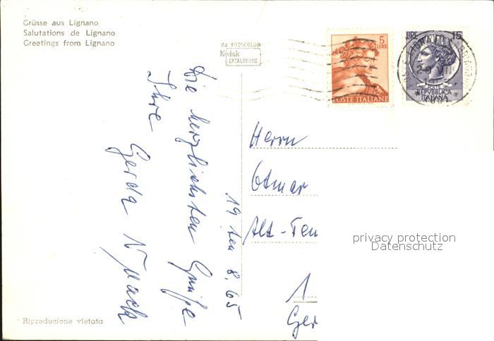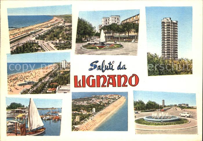 old postcard Lignano Teilansichten Strandpartien Hochhaus postalisch gelaufen Erhaltung siehe scans