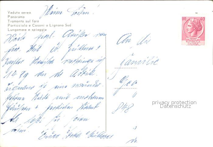 old postcard Lignano Veduta aerea Spiaggia Passeggiata postalisch gelaufen Erhaltung siehe scans