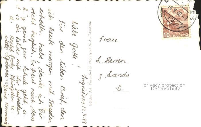 12005882 alte Postkarte Lignieres NE Chalet Bellevue Pension Lorenz Bonjour postalisch gelaufen Erhaltung siehe scans KatCode: 11470130420148
