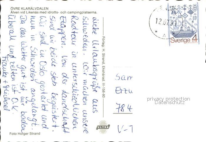 old postcard Likenaes Varmlands Lan oevre Klaraelvdalen met idrotts- och campingplatserna Bruecke postalisch gelaufen Erhaltung siehe scans