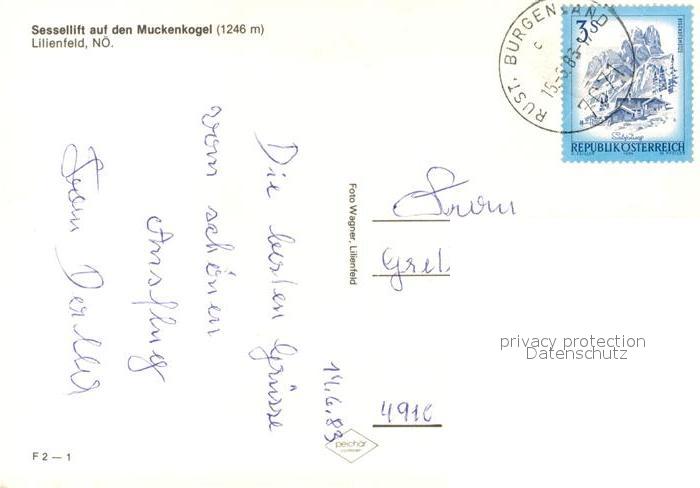 73095740 alte Postkarte Lilienfeld Sessellift Muckenkogel postalisch gelaufen Erhaltung siehe scans [NatalD47] KatCode: 11390122031407