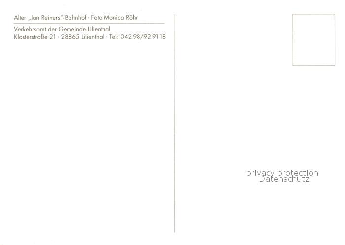 73178898 Lilienthal Bremen Alter Jan Reiners Bahnhof postalisch nicht gelaufen Erhaltung siehe scans [PaolaD17] KatCode: 11110003356005