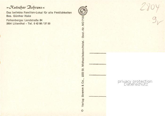 73644984 Lilienthal Bremen Kutscher Behrens Familien Lokal Gastraeume Bar Terrasse postalisch nicht gelaufen Erhaltung siehe scans [WerneD78] KatCode: 11110003356005