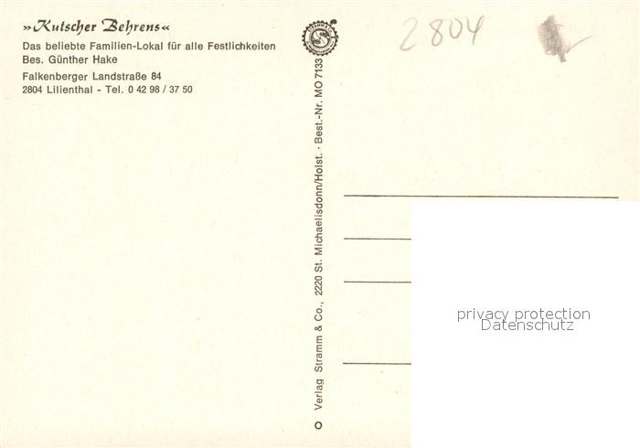 73643176 Lilienthal Bremen Kutscher Behrens Gasthaus Gastraeume postalisch nicht gelaufen Erhaltung siehe scans [WerneD78] KatCode: 11110003356005