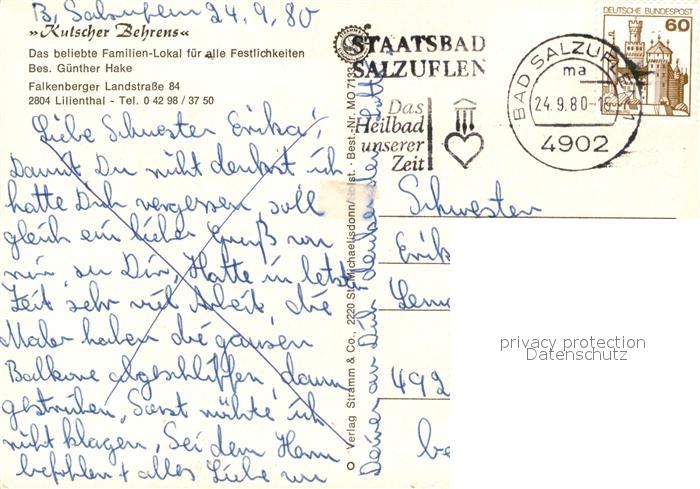 73572195 alte Postkarte Lilienthal Bremen Lokal Gaststaette Kutscher Behrens postalisch gelaufen Erhaltung siehe scans [FriedD77] KatCode: 11110003356005