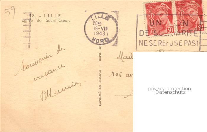 13522538 carte postale Lille Nord Eglise du Sacre Coeur postalisch gelaufen Erhaltung siehe scans [KathaD81] KatCode: 11170059559350