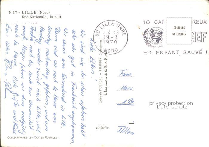 12240512 carte postale Lille Nord Rue Nationale la nuit postalisch gelaufen Erhaltung siehe scans KatCode: 11170059559350