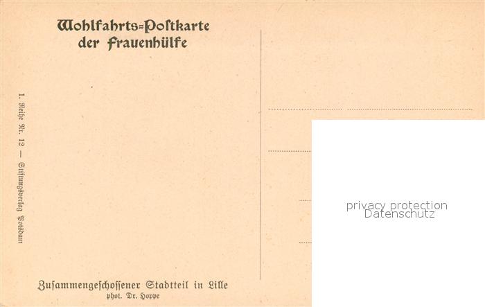13366189 Lille Nord Zerstoerter Stadtteil Kriegsschauplatz 1. Weltkrieg Wohlfahrtspostkarte der Frauenhilfe postalisch nicht gelaufen Erhaltung siehe scans [FriedD77] KatCode: 11170059559350