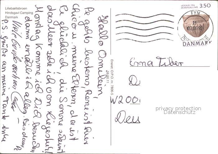 old postcard Lillebaeltsbroen Hindsgavi Camping Fliegeraufnahme postalisch gelaufen Erhaltung siehe scans