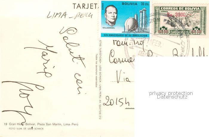 73831614 Lima Peru Gran Hotel Bolivar Plaza San Martin postalisch gelaufen Erhaltung siehe scans [FriedD77] old postcard Frie Katcode 17120
