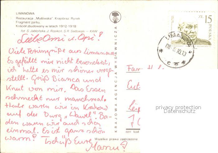 old postcard Limanowa Restauracja Mysliwska Krajobraz Rynek Fragment parku postalisch gelaufen Erhaltung siehe scans