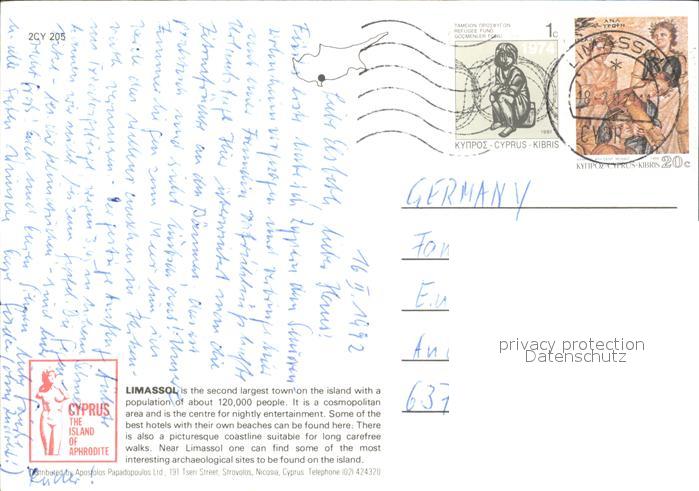 alte Postkarte Limassol Fliegeraufnahme postalisch gelaufen Erhaltung siehe scans