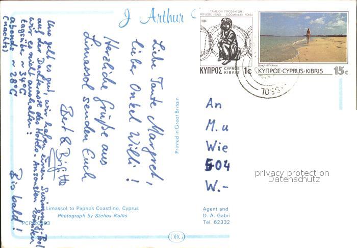 alte Postkarte Limassol Paphos Coastline postalisch gelaufen Erhaltung siehe scans