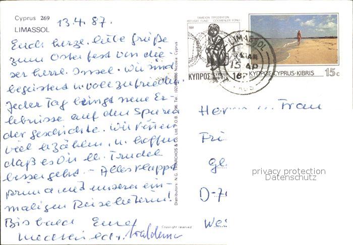 alte Postkarte Limassol Strandleben Boot postalisch gelaufen Erhaltung siehe scans