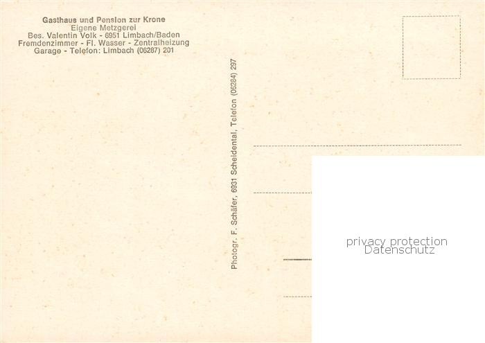 73866876 Limbach Baden Gasthaus Pension zur Krone Limbachtal Muehle Metzgerei Gaststube postalisch nicht gelaufen Erhaltung siehe scans [WerneD78] KatCode: 11110008225052