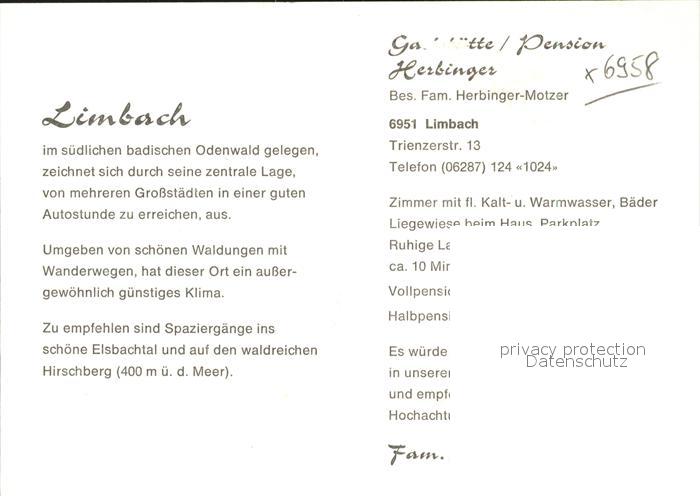 41811810 Limbach Baden Gaststaette Pension Herbingen postalisch nicht gelaufen Erhaltung siehe scans KatCode: 11110008225052