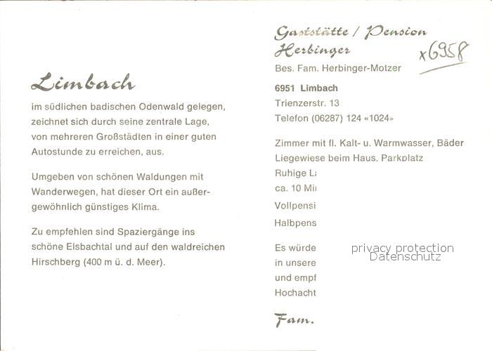 41811812 Limbach Baden Gaststaette Pension Herbingen postalisch nicht gelaufen Erhaltung siehe scans KatCode: 11110008225052