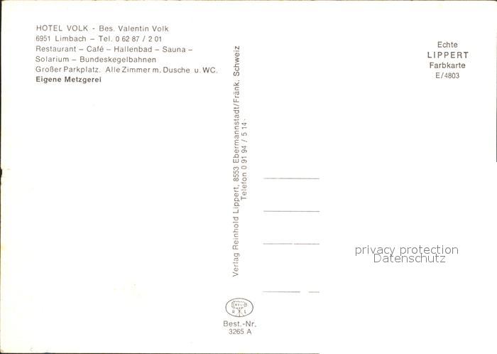 72316255 Limbach Baden Hotel Volk postalisch nicht gelaufen Erhaltung siehe scans KatCode: 11110008225052