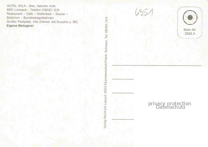 74048340 Limbach Baden Neckar-Odenwald-Kreis BW Hotel Volk Restaurant Fremdenzimmer Hallenbad postalisch nicht gelaufen Erhaltung siehe scans [FriedD77] KatCode: 11110008225052