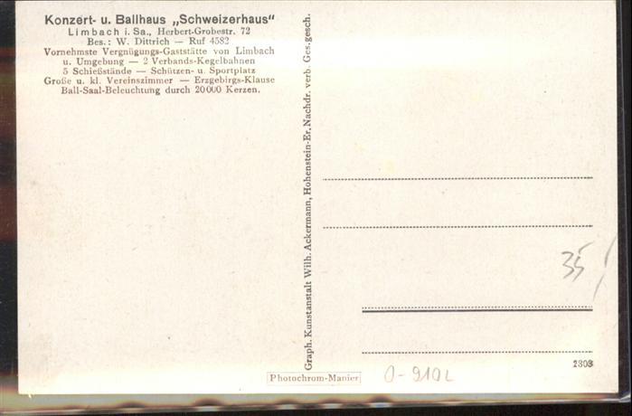 40907051 Limbach-Oberfrohna Sachsen Konzerthaus Ballhaus Schweizerhaus postalisch nicht gelaufen Alte Ansichtskarte Postkarte Katcode 11110014173140