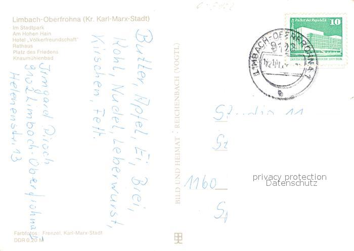 73030038 alte Postkarte Limbach Oberfrohna Stadtpark Hotel Voelkerfreundschaft Rathaus postalisch gelaufen Erhaltung siehe scans [KathaD81] KatCode: 11110014173140