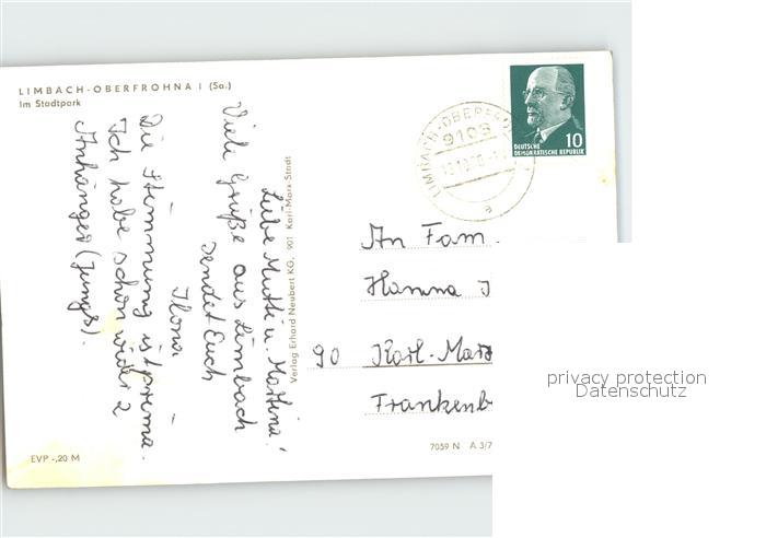 72384022 alte Postkarte Limbach-Oberfrohna Stadtpark postalisch gelaufen Erhaltung siehe scans KatCode: 11110014173140
